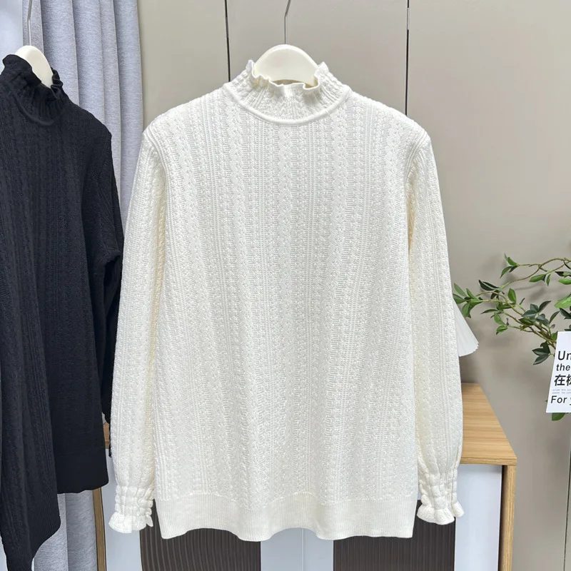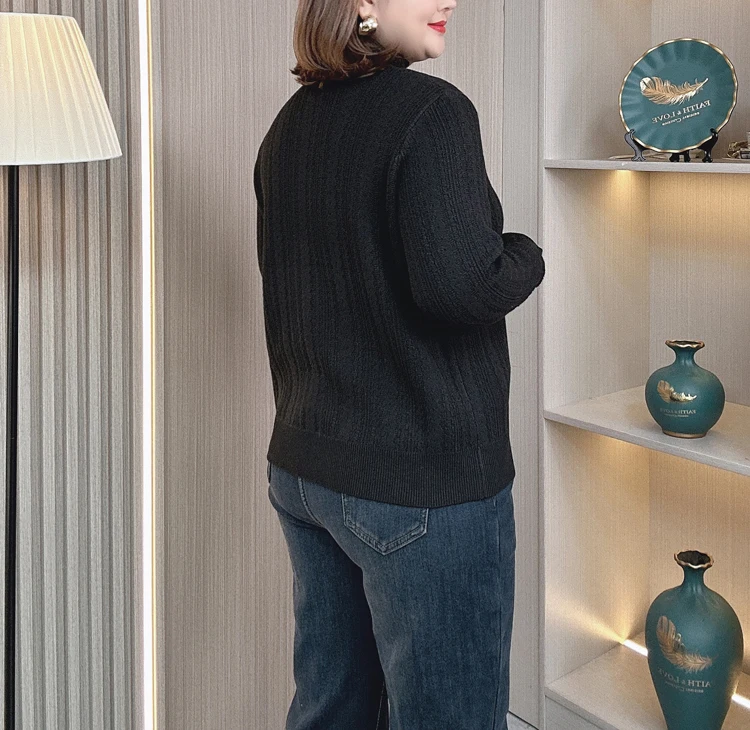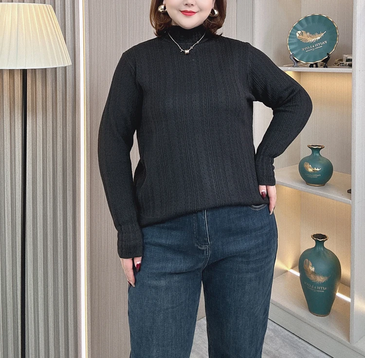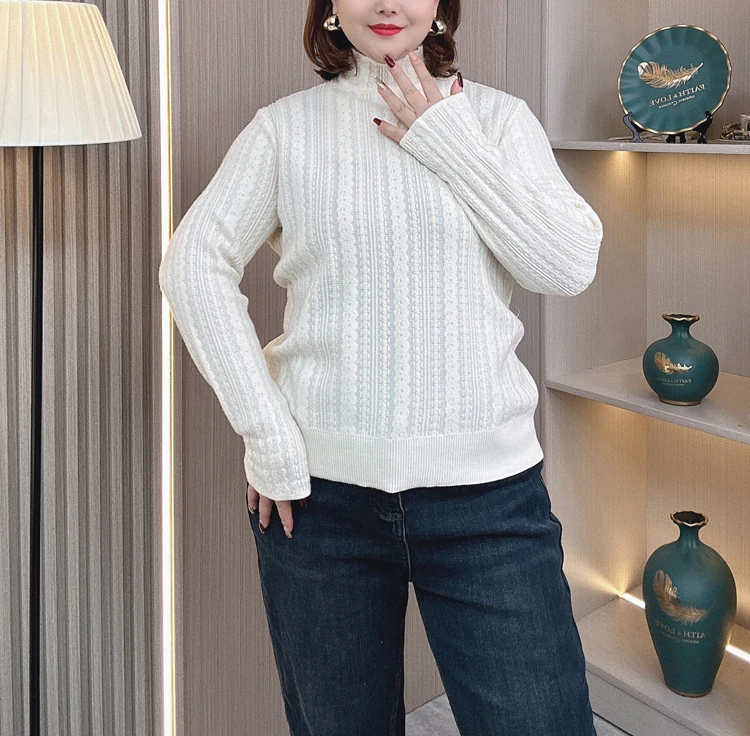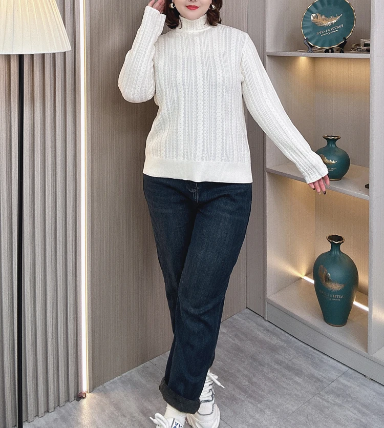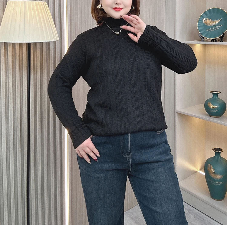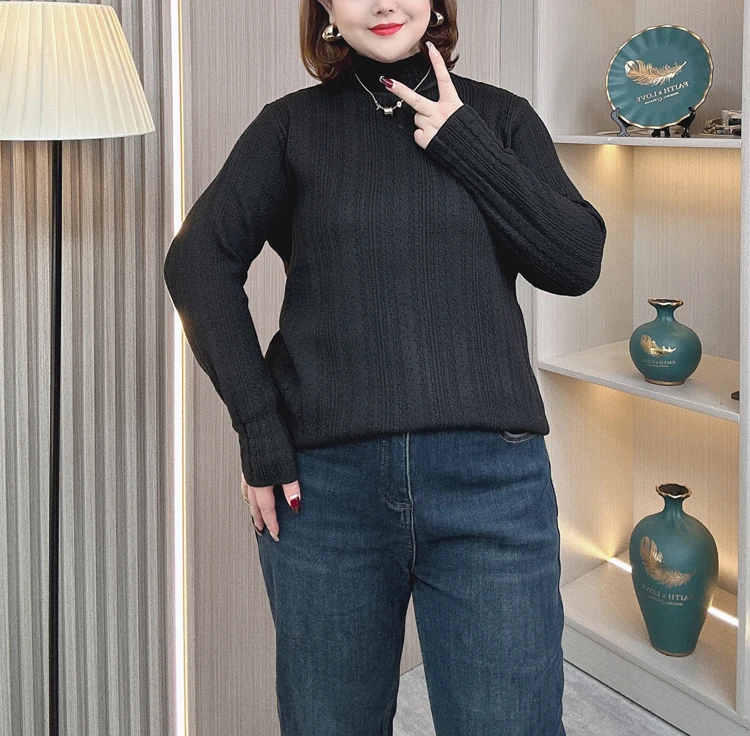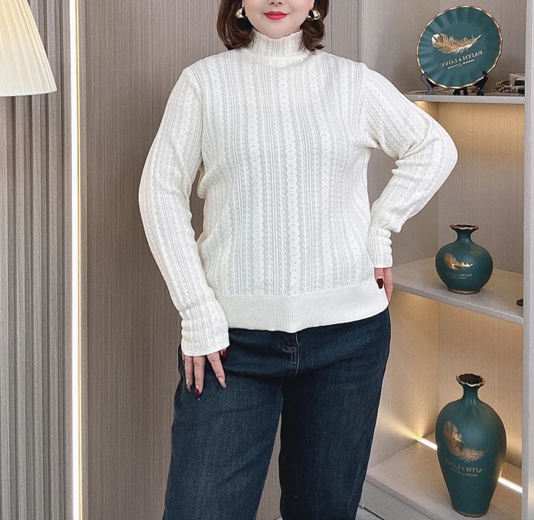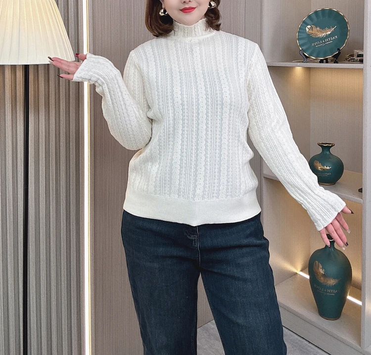 3XL 4XL PLUS SIZE Women's Sweater autumn winter Stylish lace mock neck jacquard knit pullover jumpers 703